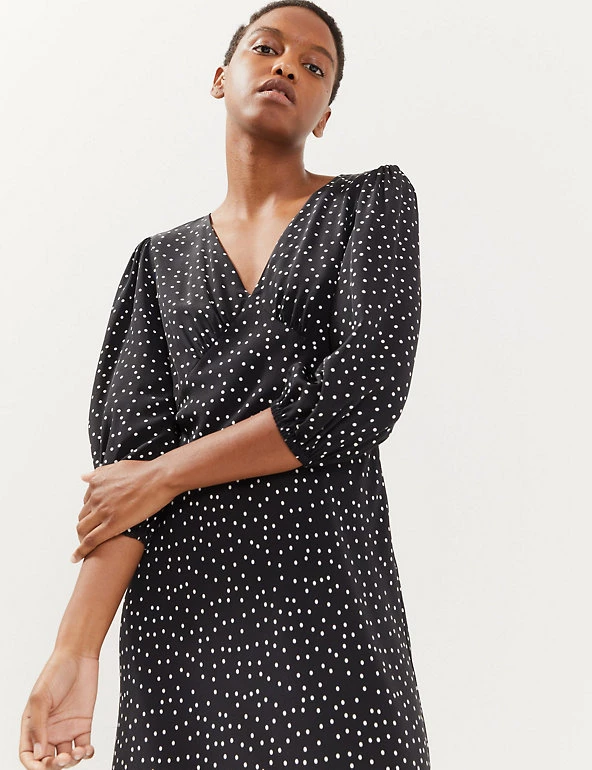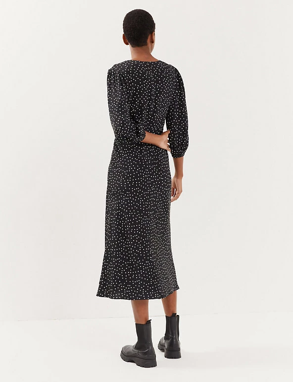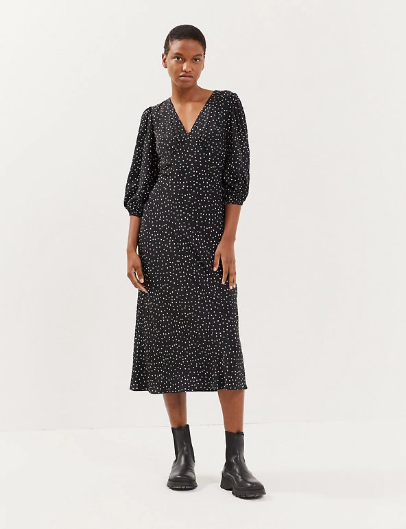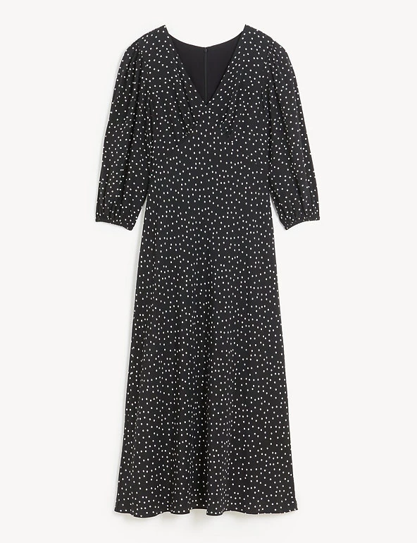 Elevate your everyday dresses with this soft, silk tea dress by Jaeger. It’s cut to a regular fit for effortless wear, with an elegant v-neck and 3/4 length sleeves. Seam detailing under the bust adds extra shape and gives this midi piece a flattering finish. This style is lined for comfort and features a layered polka dot print throughout.