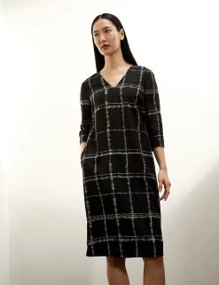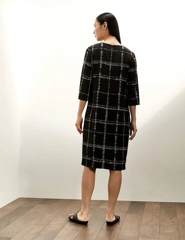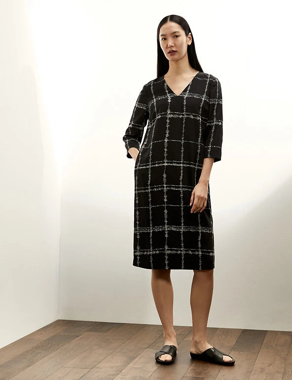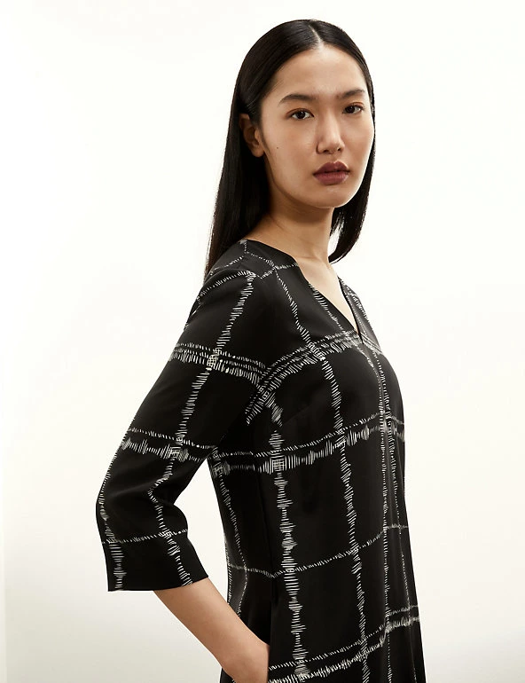This pure silk shift dress by Jaeger exudes charm with its graceful checked print. The elegant piece comes in a regular fit and drops to a mini length, with a fully lining for comfort. It’s designed with a flattering v-neck, and the back-zip fastening means it’s easy to slip on. Long sleeves keep you feeling warm and cosy from day to night. It’s made from washable silk that feels super soft against the skin.