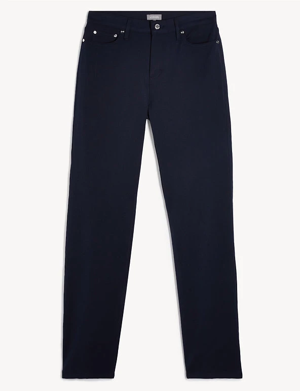 With their simple silhouette and traditional five-pocket style, these Jaeger trousers are simple to dress up or down. They have a versatile straight leg fit, with an easy mid-rise waistline. Added stretch in the fabric ensures plenty of comfort, and they fasten with a button and zip for a neat finish.