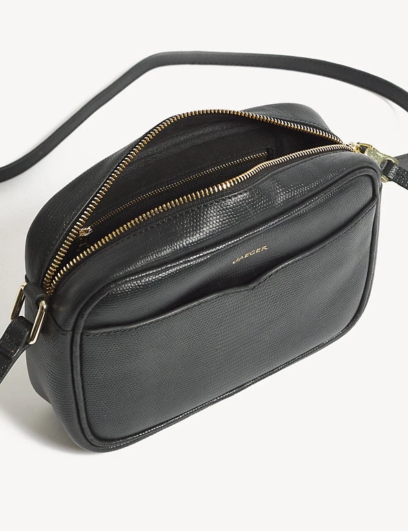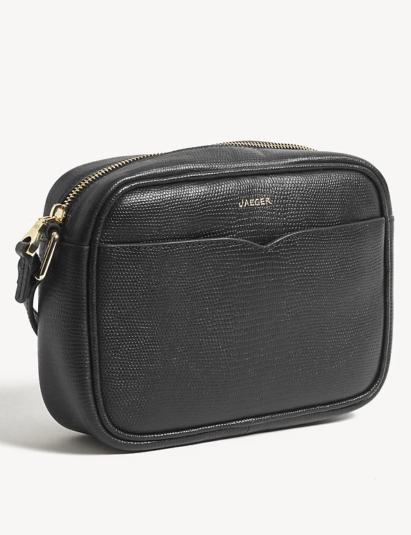 Stylish and versatile, this Jaeger cross body bag will become your favourite go-to. It’s crafted from premium leather with a beautiful lizard texture and has a cotton lining. The bag fastens with a zip and features a zipped inner pocket to keep your essentials safe. An outer pocket is handy for storing tickets or receipts. It’s finished with gold hardware and a subtle gold logo on the front.