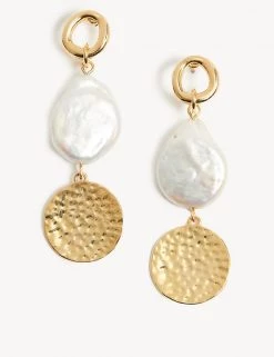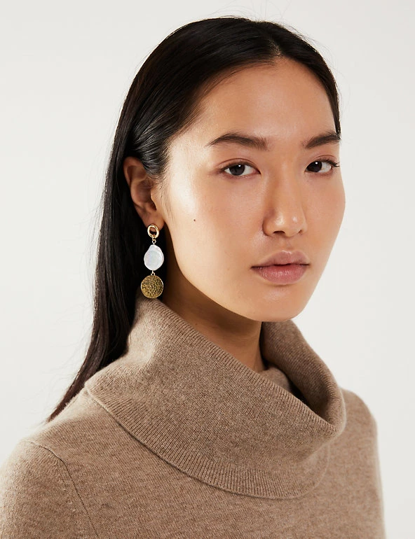 These timeless drop earrings from Jaeger will elevate your outfit, taking you from day to night. They feature freshwater pearl and gold coin detailing for a classic look with a contemporary twist.