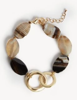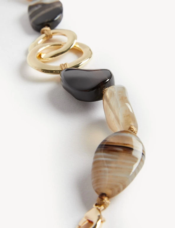 This chunky pebble and gold bracelet from Jaeger is a statement piece that will elevate any outfit. It fastens with an adjustable clasp. Pair this timeless classic with the matching necklace and earrings to create a look that works just as well during the day as it does at night. The pebbles will vary in colour.