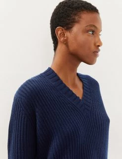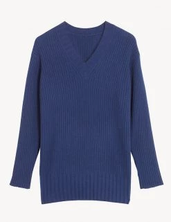Stay warm and cosy in this soft wool-cashmere blended jumper from Jaeger. It’s cut to a regular fit with long sleeves and an elegant v-neck. The jumper features a ribbed design subtly contrasted at the neck and hem.