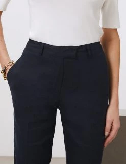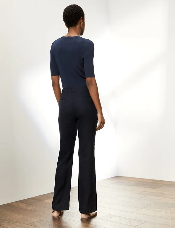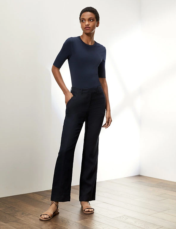 Bring smarter looks into the new season with these pure-linen trousers from Jaeger. Sitting high on the waist and straight through the leg, the trousers cut a modern silhouette that flatters the figure. They fasten with a classic hook bar and zip closure, adding a neat finish to your outfits. Made from quality European linen, they feel delightfully cool and soft on the skin.