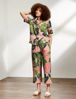 This premium pure linen pyjama shirt by Jaeger is a cool, comfortable choice for the summer months. Designed in a comfy regular fit, this short-sleeved style has an elegant revere collar and matching button fastenings. The bold oversized leaf pattern brings a fun touch. Pair with the matching shorts to make an instant statement.