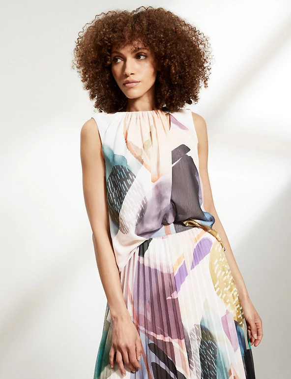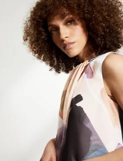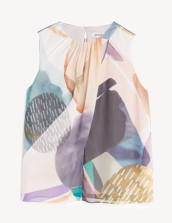 This printed blouse from Jaeger will take you from day to night in an instant. Crafted from georgette fabric for a beautiful drape, this regular-fit style is both stylish and flattering. It features cut-out detailing for a modern touch, and an all-over print that’s exclusive to the brand. This piece fastens with a keyhole button at the back. Made with recycled polyester.