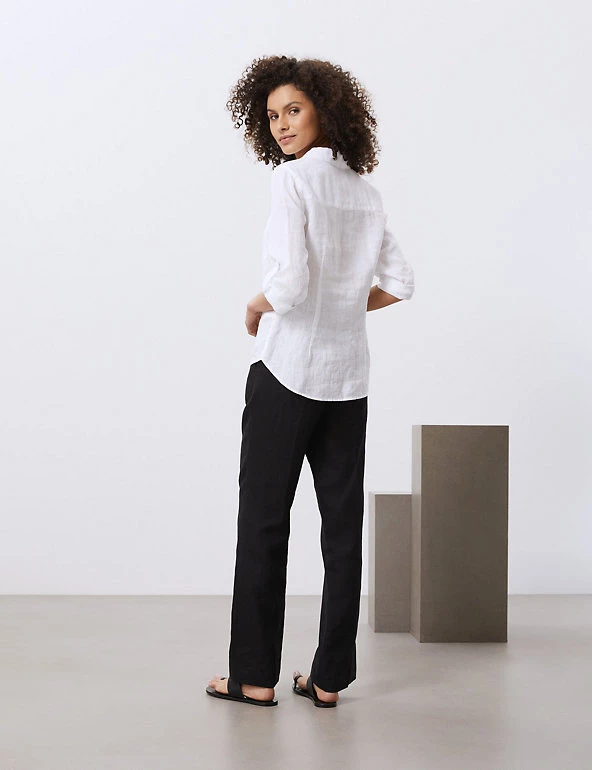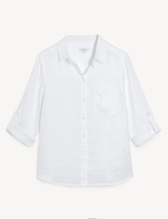 A linen shirt is a smart-casual essential, and this Jaeger design fits the bill. An effortless regular fit brings a modern, laid-back look to the collared style. Roll-up 3/4 length sleeves and a front pocket add to the relaxed vibe, while high-quality European linen provides a breezy feel.