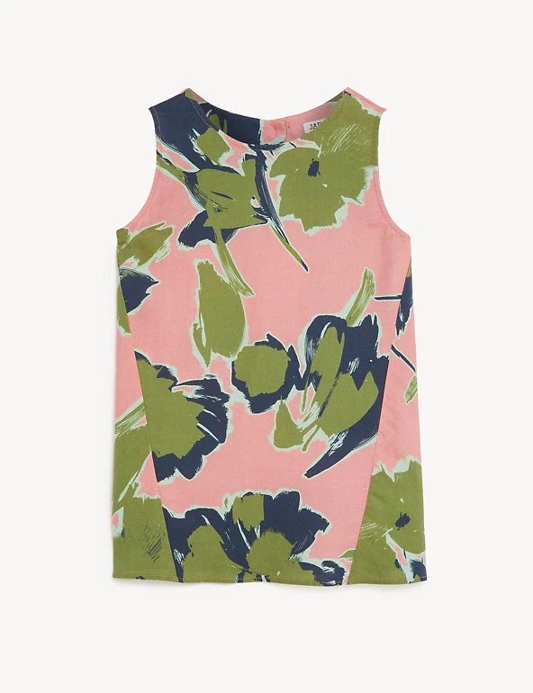 This pure linen blouse by Jaeger is a fresh option for summer. It’s crafted from breathable European linen in a flattering regular fit, with a sleeveless shape that is perfect for warm days. The oversized leaf print is unique to Jaeger, and will add a bold feel to any outfit. This piece is finished with modern cut-out detailing at the back. The dress-up, dress-down design looks great with linen trousers or shorts for effortless summer style.