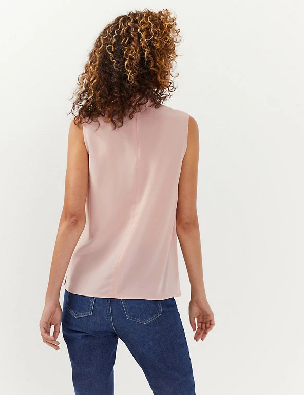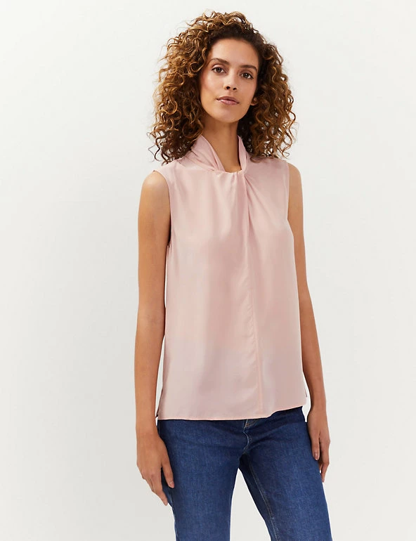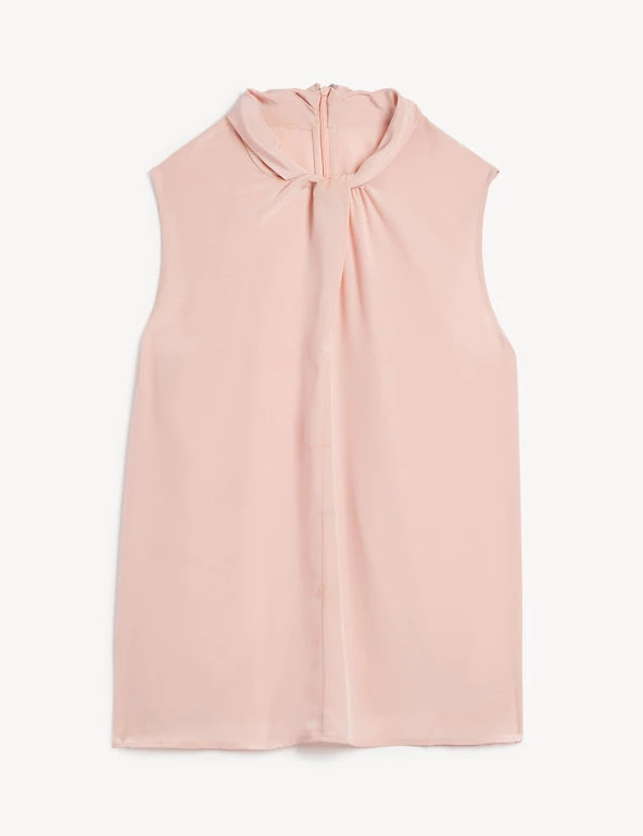 Be effortlessly elegant in this pure silk knotted blouse from Jaeger. This regular-fit design is styled with a high neck with a zip fastening at the back. It has an on-trend sleeveless shape that’s both unique and easy to wear. It’s machine-washable for convenience.