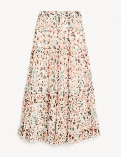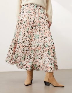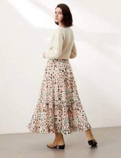 This striking midi skirt from Jaeger features a striking floral print, exclusive to the brand. It’s crafted in a flattering regular fit from lightweight georgette fabric and features a zip fastening for the perfect fit. Ruffled tiers add a playful finish to this versatile piece, which is also lined for comfort. Dress it up with statement boots or down with trainers for stylishly laid-back looks. Made with recycled polyester.