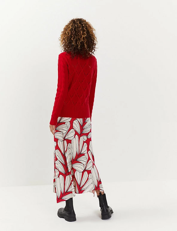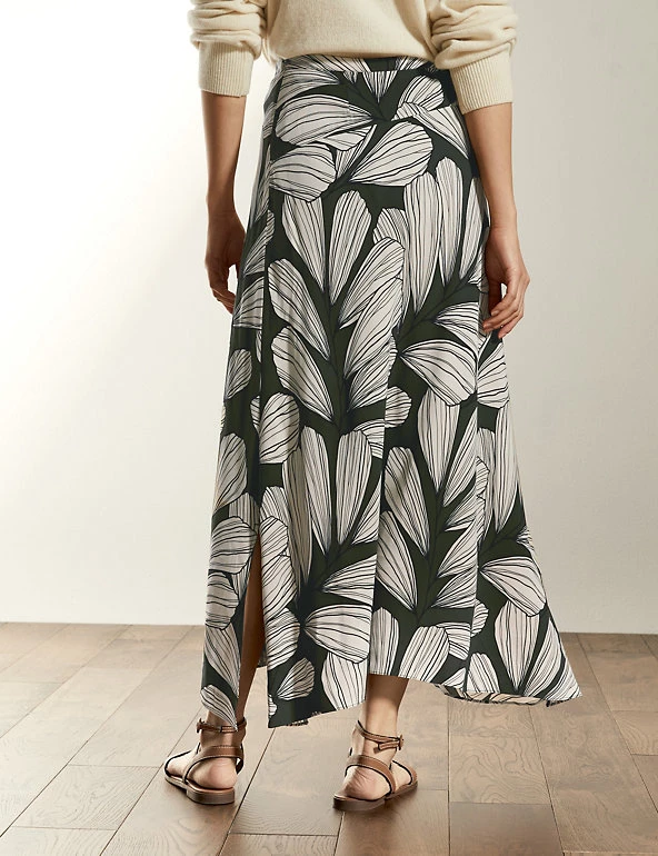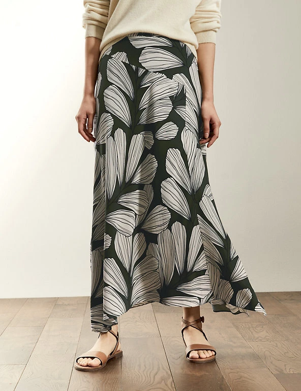 Effortless grace is yours for the taking with this A-line skirt from Jaeger. It’s cut in a regular fit and falls to an on-trend midi length. This flattering skirt features a bold Jaeger-designed leaf print and has an asymmetrical hemline for added interest. It’s fully lined for comfort and fastens with a zip. Made with sustainably sourced viscose.