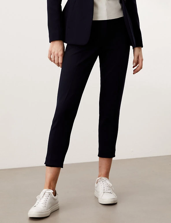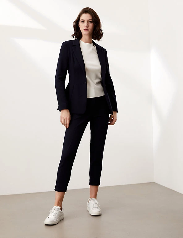 Create a stylish formal look with these luxury tapered trousers from Jaeger. They’re cut in a 7/8th length with added stretch for extra comfort and a standard hook bar and zip fastening. The trousers are also fully lined.