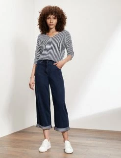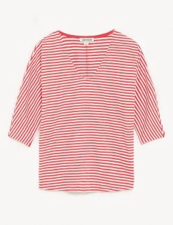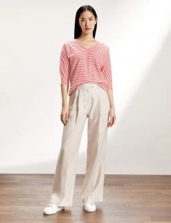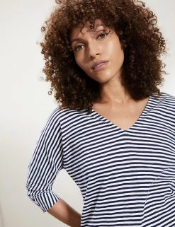 Expand your collection of seasonal staples with this pure cotton top from Jaeger. This flattering v-neck style is cut to a comfortable regular fit with three-quarter length sleeves. The soft, striped fabric has a cosy slub texture for extra depth. This timeless style will look just as good paired with jeans and trainers as it will with a skirt and cardigan.
