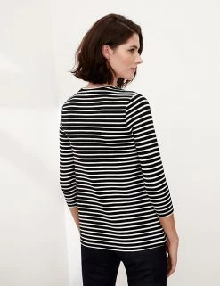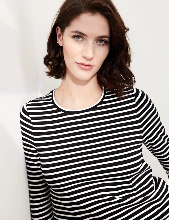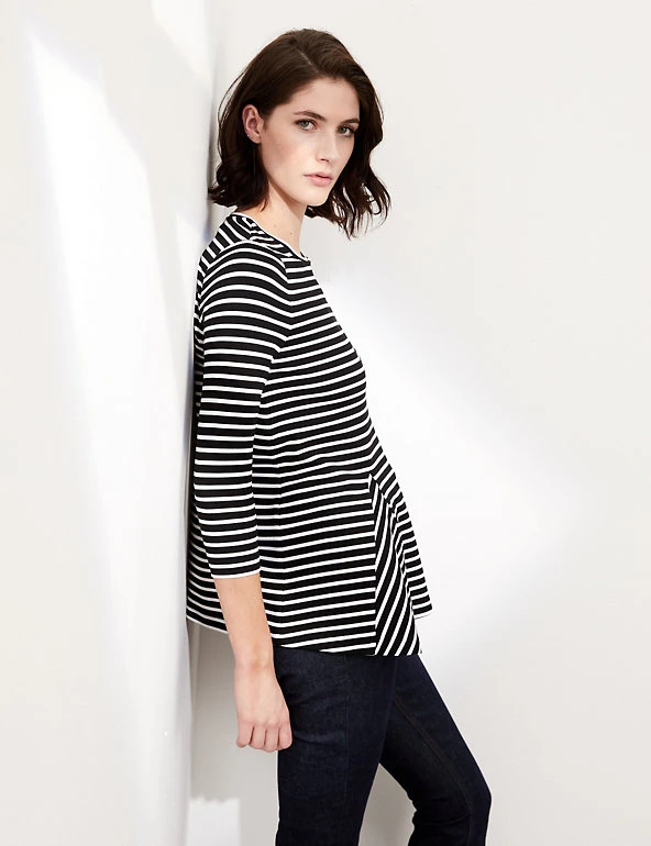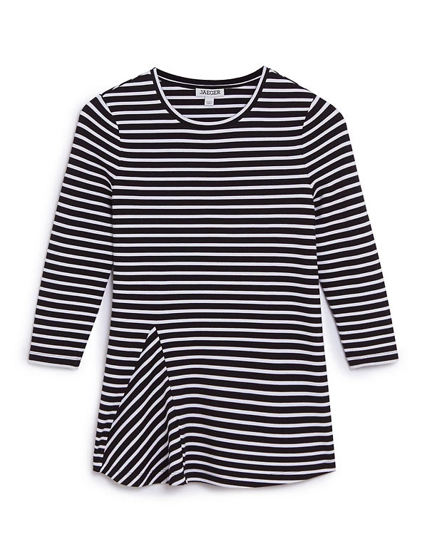 With a striking godet insert that creates contrasting stripes, this Jaeger top gives the classic Breton a contemporary twist. It has a regular fit, with an easy crew neckline and comfortable three-quarter-length sleeves. This piece feels gorgeously soft against the skin and is made with added stretch for optimal comfort. Pair it with jeans and trainers for elevated casual style.