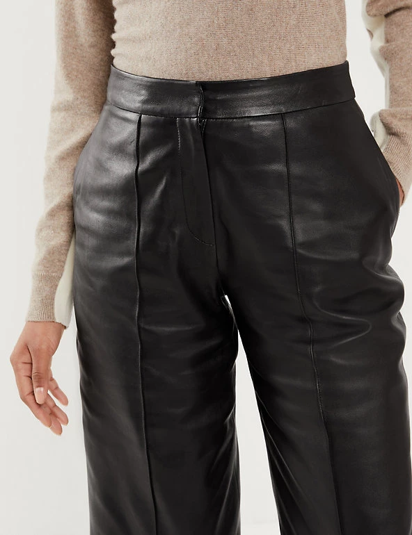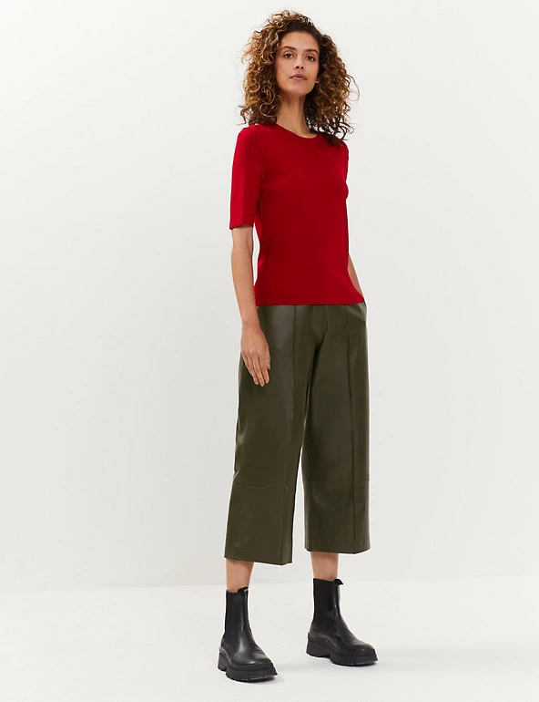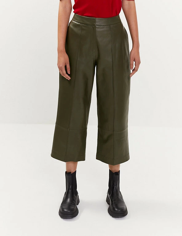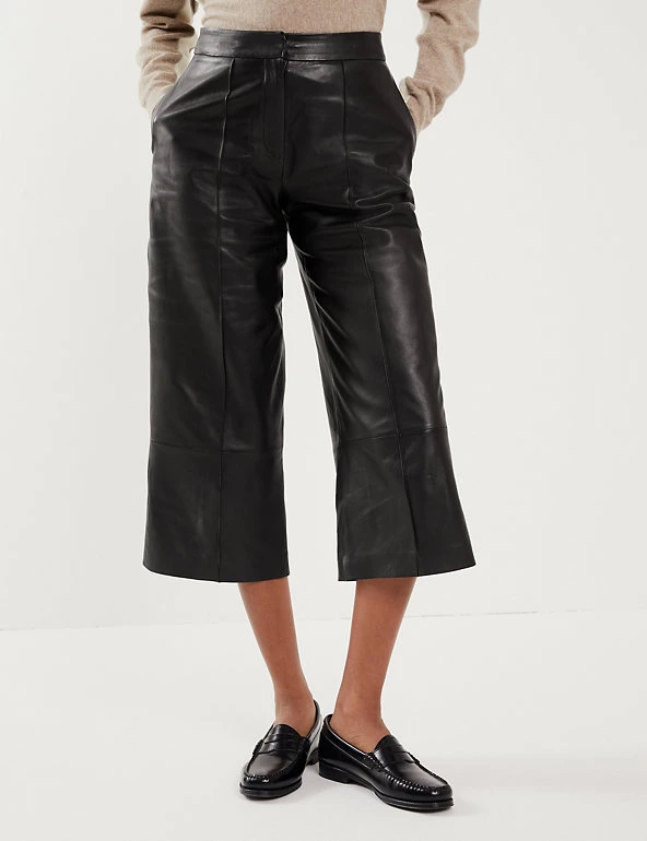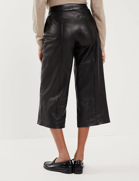 Made with soft leather, these statement culottes from Jaeger will make a chic addition to your winter wardrobe. They are cut in a comfortable wide-leg fit with a hook bar and zip fastening. A flattering high waist completes the design.
