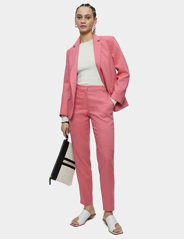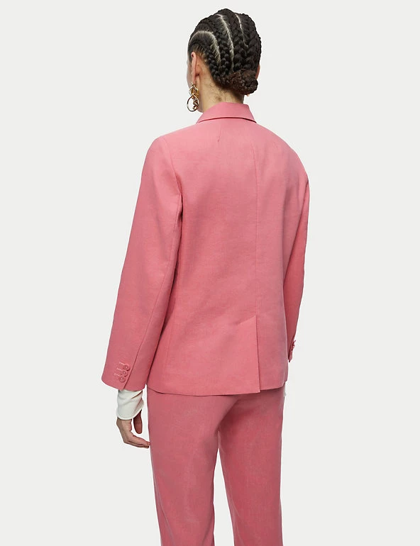 This linen-blend blazer by Jigsaw is a fresh take on classic occasionwear. Cut to a regular fit, this effortless style has classic lapels and a single-breasted button fastening. The on-trend curved hem makes it great for layering. Two welt pockets make for practical finishing touches.