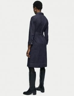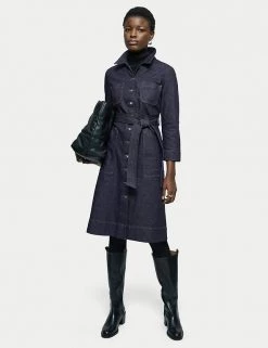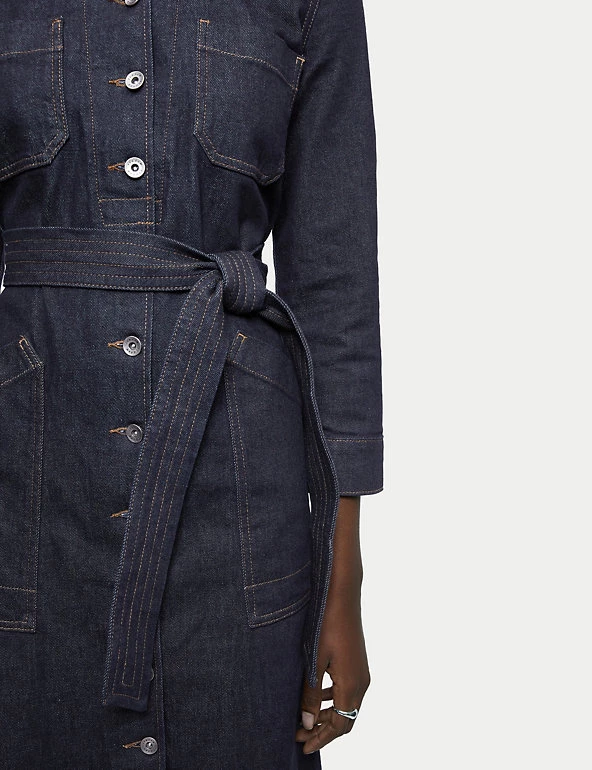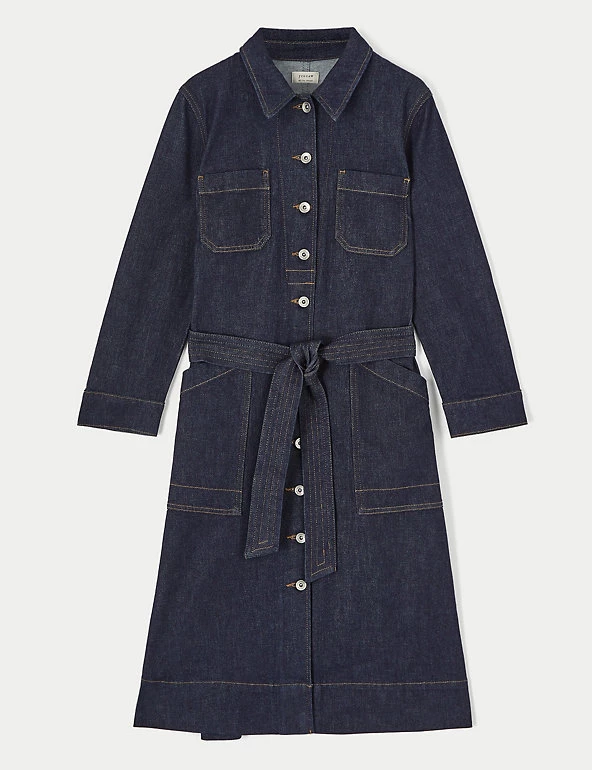 Elevate your weekend look with this sophisticated denim shirt dress by Jigsaw. This stylish piece is made in a regular fit and drops to midi length. It features a classic collared neck, patch pockets on the chest and a button-through closure with branded metal buttons. A tie belt at the waist enhances your natural silhouette. Contrast stitching adds a chic finishing touch to this casual favourite.