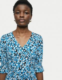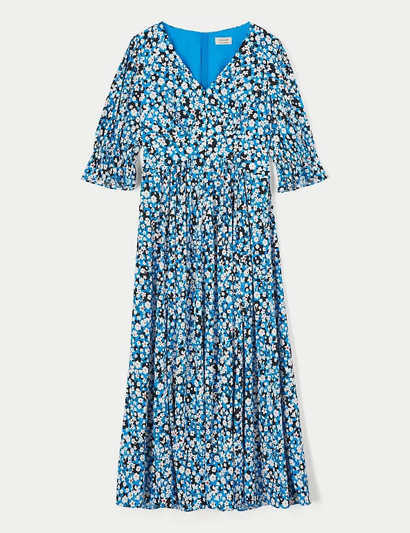 Reach for this ditsy print tea dress from Jigsaw on casual days. It’s designed in a comfy regular fit with a waisted panel and midaxi length for a flattering silhouette. The short sleeves have frilled cuffs for a playful touch, while the v-neck enhances the feminine look. This versatile piece fastens with a back zip.