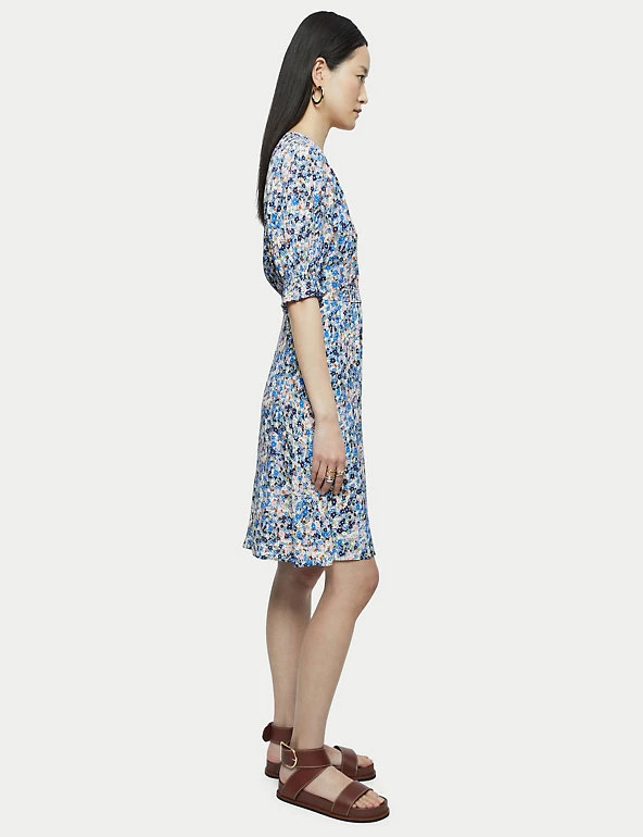 This floral tea dress from Jigsaw has true throw-on-and-go appeal. Crafted in a regular fit, this flattering knee-length design has a v-neck and short puff sleeves. Shirred detailing around the waist and ruffle cuffs add extra shape to this fresh summer style.