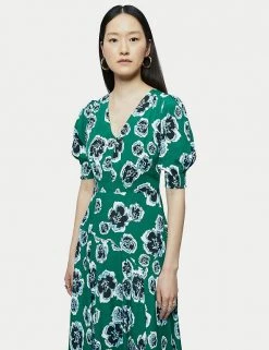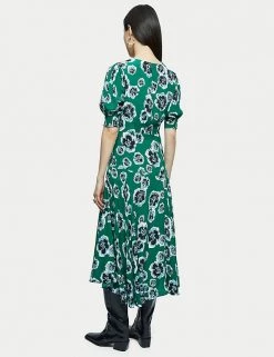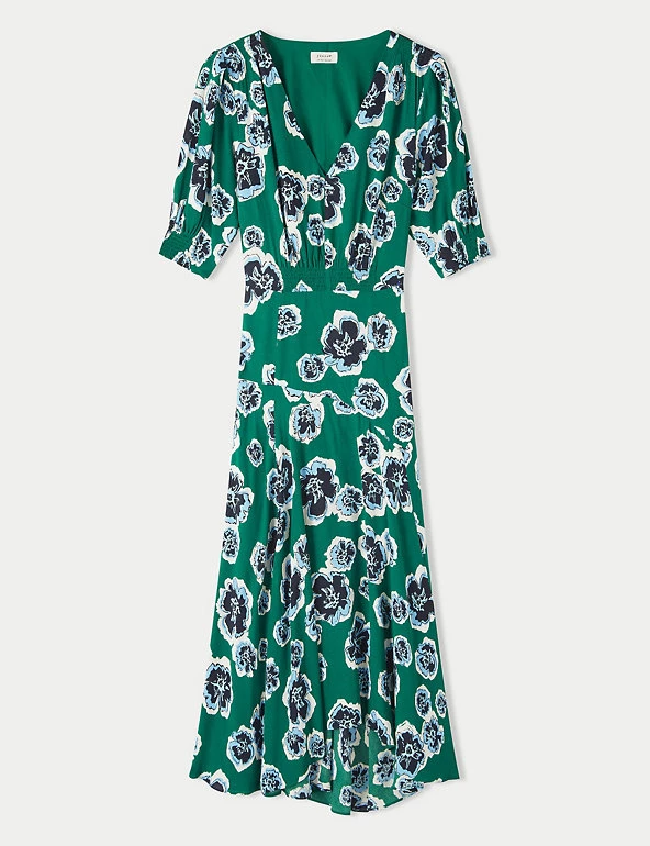 Stand out on special occasions in this elegant floral tea dress from Jigsaw. It’s cut in a comfortable regular fit, with a feminine v-neckline. A shirred underbust panel gives extra definition to your waist, and the short sleeves have shirring to add a touch of pretty fullness. On the skirt, a bold asymmetric tier creates fluttery movement in the midaxi length hemline. This piece fastens with a side zip.