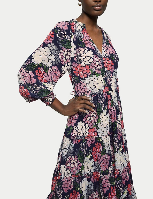 With an archive-inspired French floral print and a flowing tiered midaxi silhouette, this Jigsaw tea dress is full of eye-catching style. It’s designed in a comfy regular fit from soft crepe fabric and features a flattering waist tie. The long sleeves end in smocked cuffs, meaning you can push them up for a laid-back look. A softly pleated open v-neckline adds a final feminine flourish.