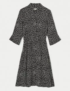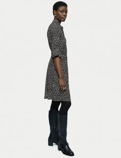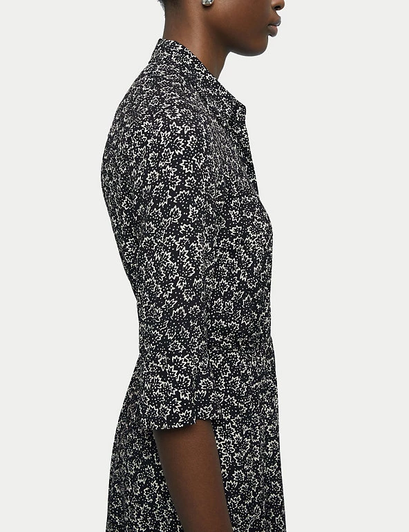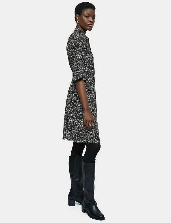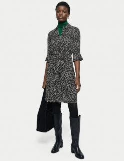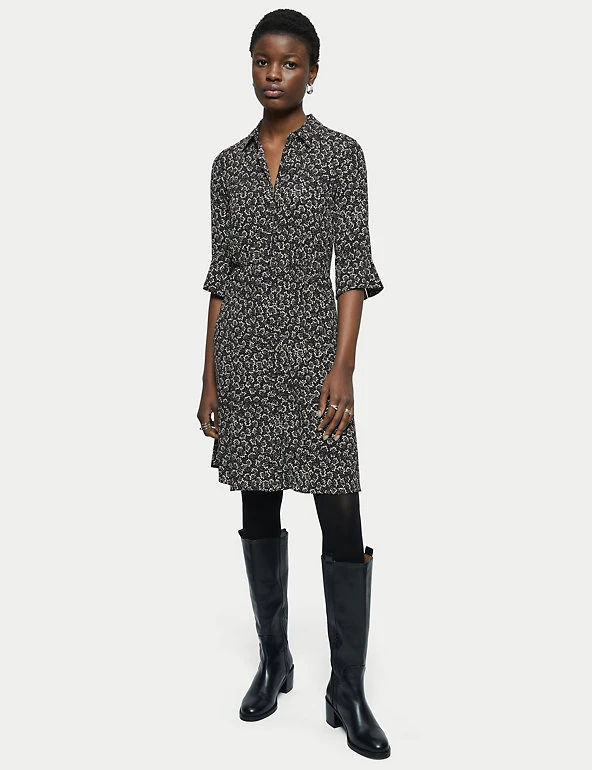 Embrace smart-casual days in effortless style with this Jigsaw tea dress. It’s designed in a comfy regular fit with a fixed waist to flatter your figure and neat 3/4 length sleeves. This versatile piece features a button-down bodice with a smart collared neck and a flowing knee-length skirt. It’s crafted from textured crepe fabric with a unique star leaf print and fastens with a zip.