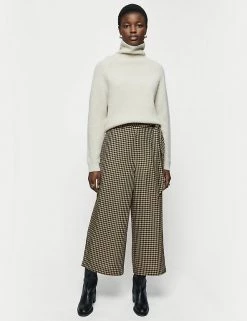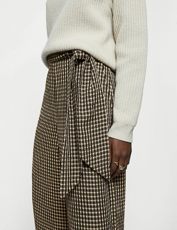 A classic gingham print gives a distinctive look to these Jigsaw trousers. They sit at a comfortable mid-rise and are cut straight in the leg to a cropped length. An elasticated waist features a tie belt for the perfect fit. The textured seersucker fabric adds a premium feel, while practical side pockets provide the final detail.
