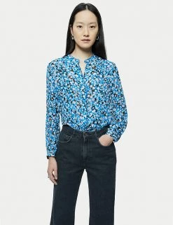Add a dainty touch to your wardrobe with this ditsy floral blouse from Jigsaw. It’s cut in an easy relaxed fit, and has a classic button-through front. Ruffle trims at the cuffs, front placket and collar lend a romantic feel.