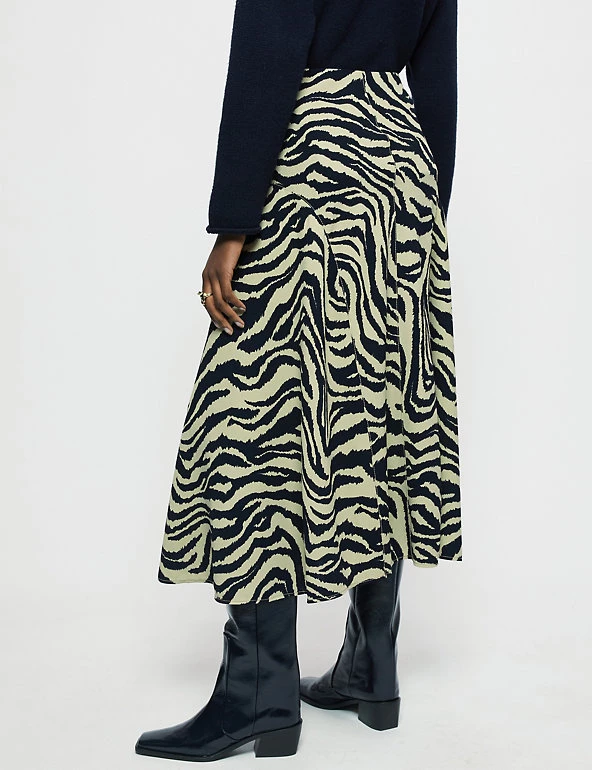 Swing into the new season in effortless style in this midi slip skirt from Jigsaw. It’s fitted with a hidden elasticated waistband for maximum comfort and has extra shaping for a flattering silhouette. This versatile piece is crafted from a textured weave fabric with a statement zebra ikat print and stitching details for extra charm. Made with recycled polyester.