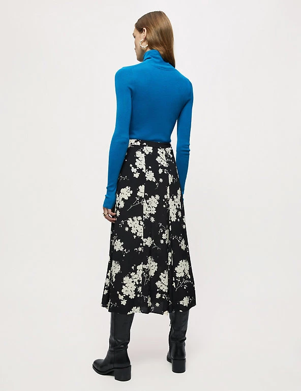 Crafted with godet detail for beautiful draping, this sophisticated slip skirt by Jigsaw was made to flatter. It’s cut to a comfortable regular fit in medium-weight fabric, with a full, on-trend midaxi skirt. The unique floral pattern adds to this piece’s versatility. It fastens with a zip on the side.