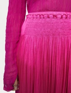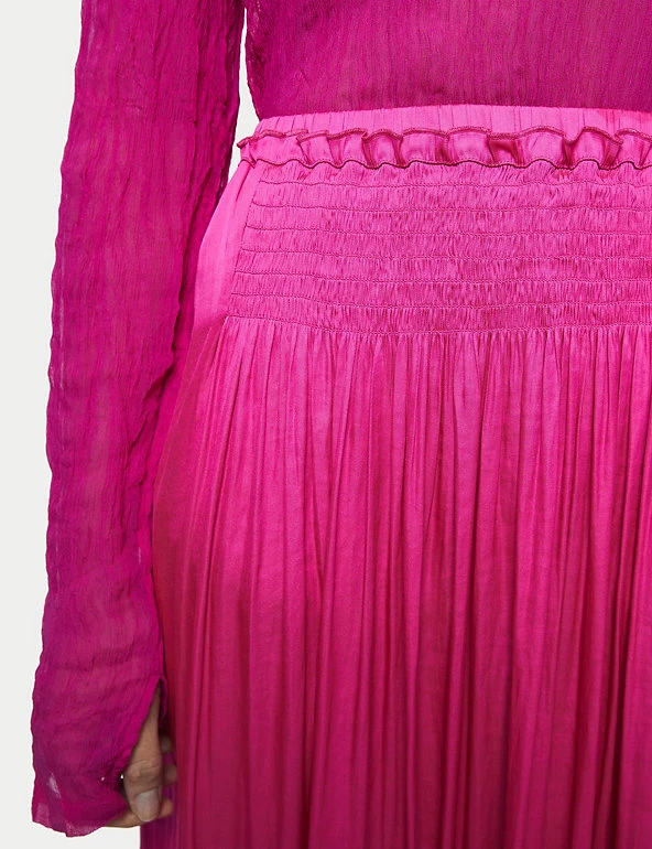 Embrace a unique day-to-night look with this satin slip skirt by Jigsaw. This fluid midaxi skirt is designed with an elasticated waist for your perfect fit, and features rich smocking as well as ruffle detailing for added interest. Team with a chunky jumper and your favourite boots for an effortless mix of textures. Made with recycled polyester.