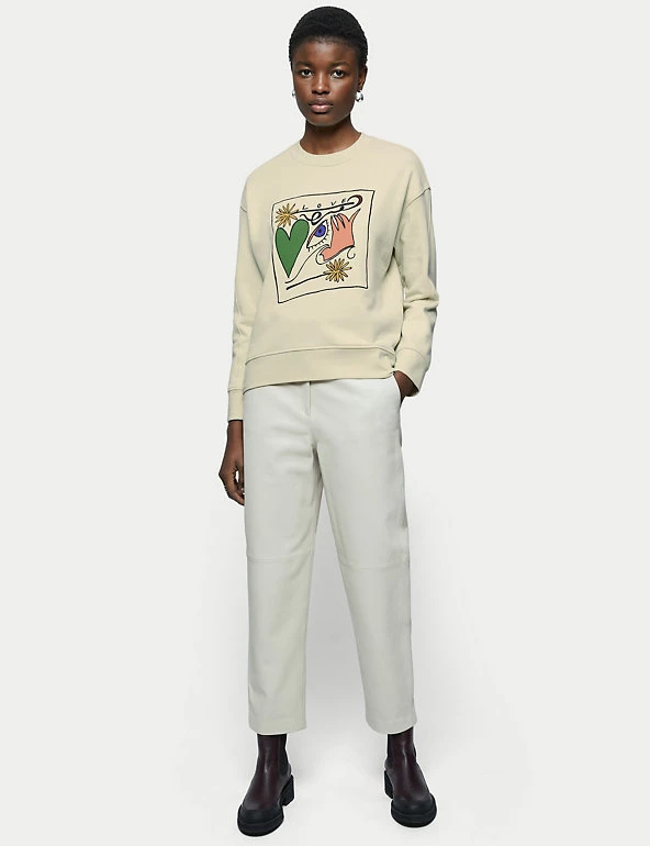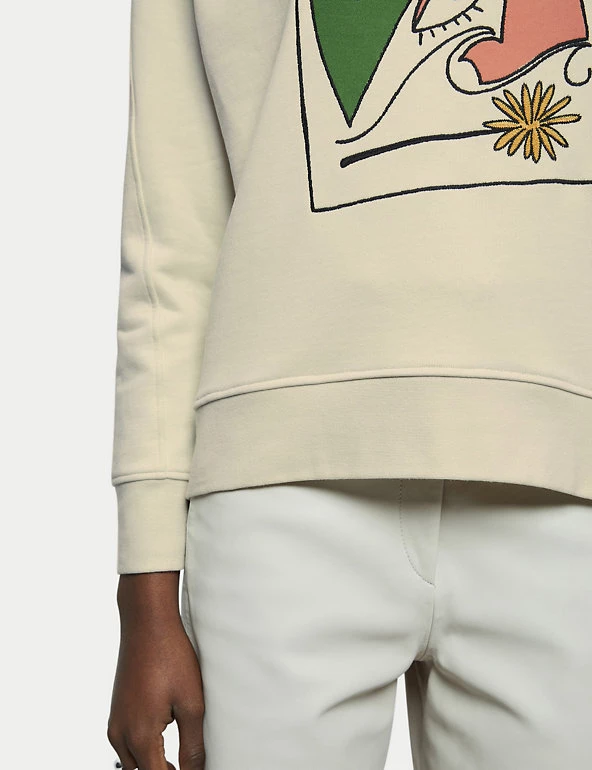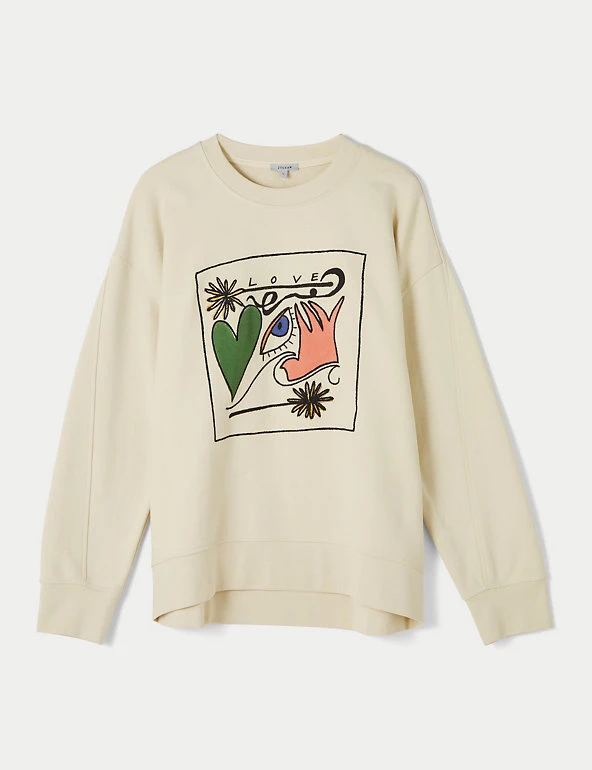 With its pure cotton fabric and exclusive design, this sweatshirt from Jigsaw is a conversation-starting style. This effortless piece is cut to a regular fit, with a classic round neck and raised seam detailing on the long sleeves. A playful design by illustrator Coco AKA She Snacks features on the front in a colourful mix of print and embroidery.