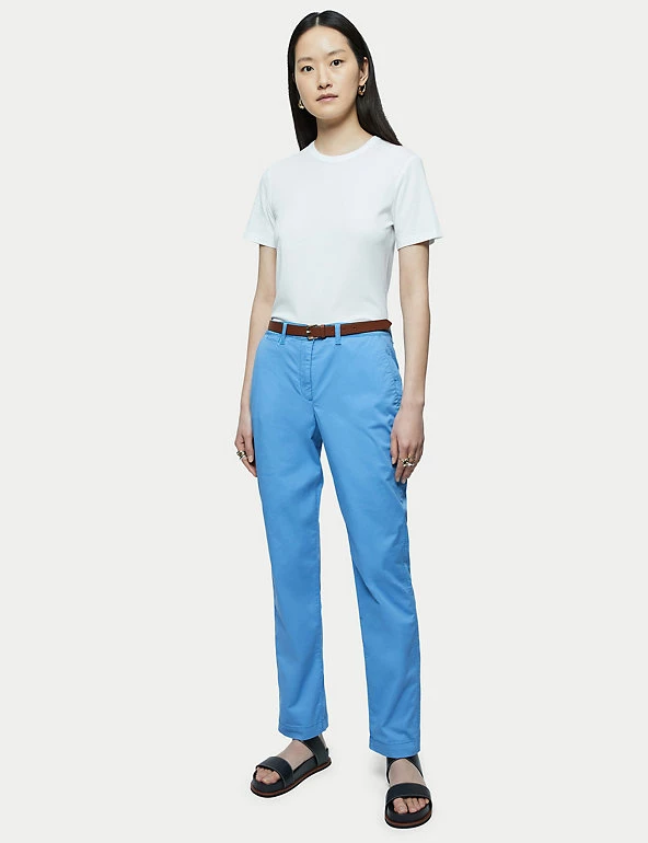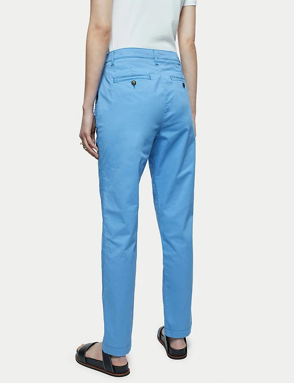 Perfect your smart-casual looks with these cotton-rich chinos from Jigsaw. They have a slim tapered leg and a flattering high waist. The back jetted pockets and zip fly fastening lend a neat tailored touch. Brushed cotton fabric and a hint of stretch make sure they tick the comfort box.