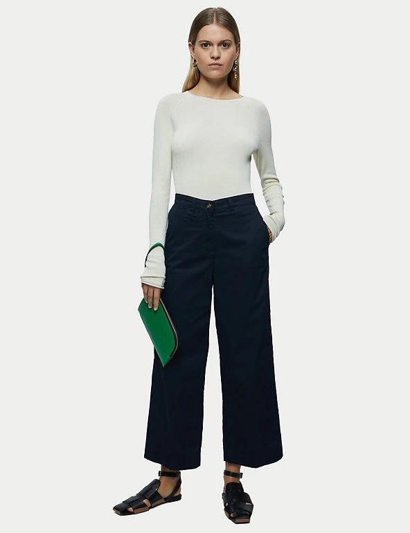 These versatile cotton-rich chinos from Jigsaw are the perfect everyday trousers. Designed in a wide-leg shape, they’re cut from soft stretch cotton for your best fit. They sit high on the waist and are cropped for a modern look. A five-pocket finish and contrast detailing on the inner waistband complete the design.