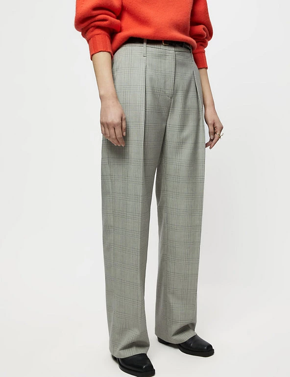 Cosy and chic combine in these pure wool trousers from Jigsaw. They’re cut to a regular fit and sit comfortably at mid-rise, with an elegant straight leg. The checked pattern adds to their quintessentially British style. These trousers are designed with two side pockets, two welted back pockets, plus a hook bar and zip fastening.