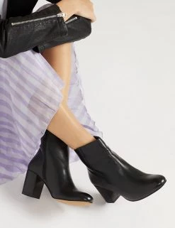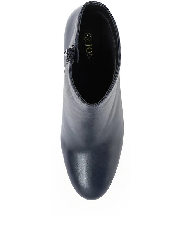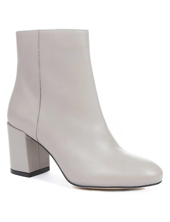 Designed with low block heels, these understated leather ankle boots by Jones Bootmaker will take you from workday to weekend. They feature a universally flattering rounded toe and a handy side zip fastening.