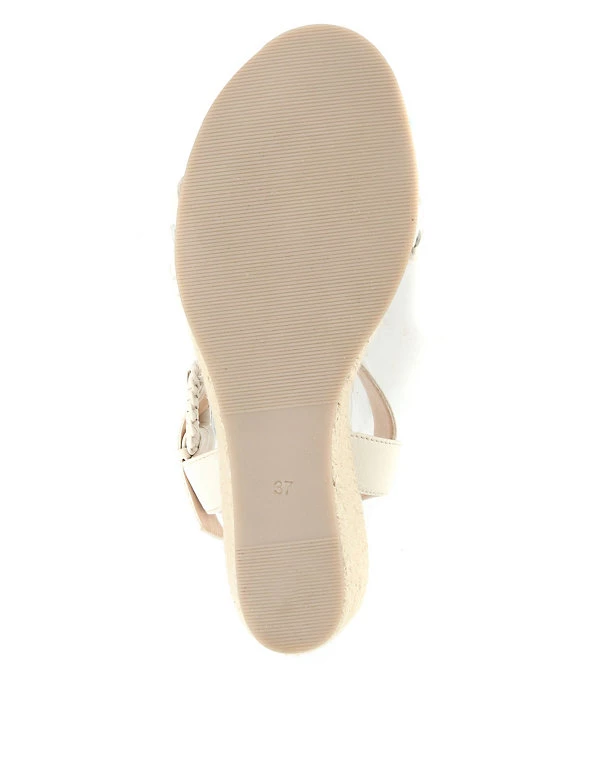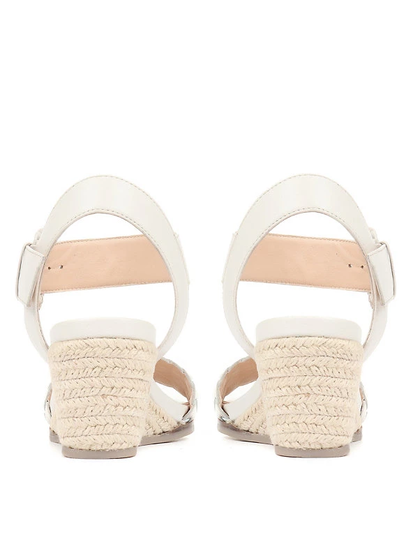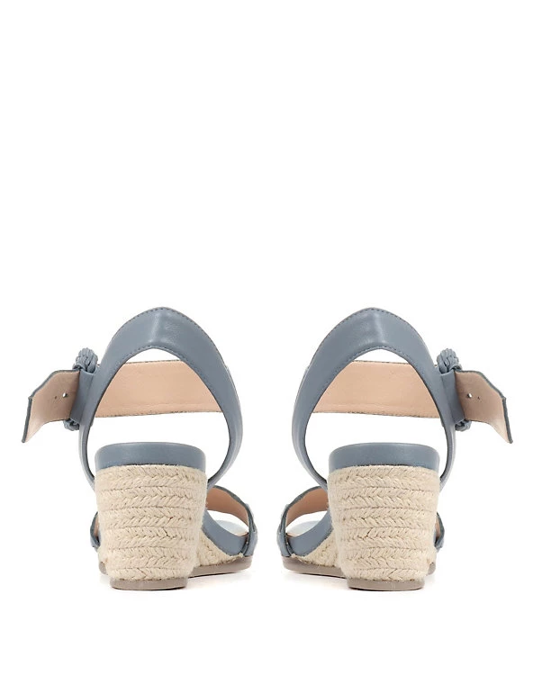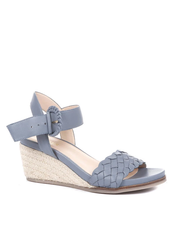 Bring a dressed-up feel to your warm-weather outfits, with these leather espadrilles from Jones Bootmaker. They’re made in a comfortable regular fit, with a raffia trim on the mid-height wedge heels. The woven pattern on the open toes is echoed in the oversized buckle fastenings at the ankle, and a full leather lining gives excellent breathability.