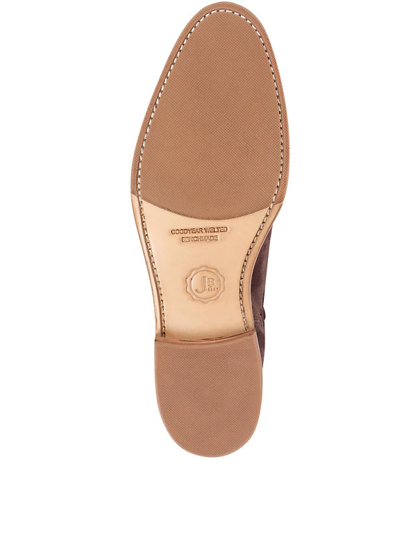 With their classic slip-on style, these Chelsea boots from Jones Bootmaker are a staple you can rely on season after season. They’re crafted from rich suede, with a hallmark elasticated side panel, flat heels and a flattering round toe. Their Goodyear welted rubber soles ensure durability.