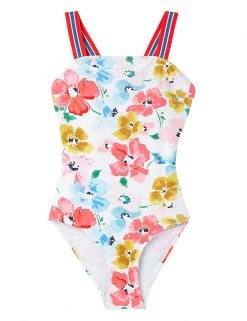 Make a splash in and out of the pool with this stylish swimsuit from Joules. This strappy one-piece is designed with a square neck and a flattering high leg. The contrast of floral print and sporty stripes gives this style its contemporary look.