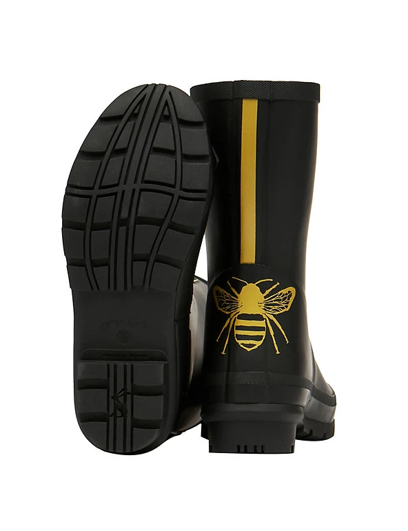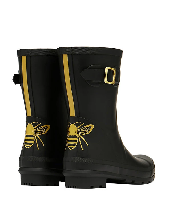 These charming wellington boots from Joules will put a spring in your step. They come in a simple pull-on style and feature a classic mid block heel, as well as a side strap and buckle so you can adjust the fit. These wellies are decorated with stripe detail and a cheerful bee at the back, plus signature Joules branding at the front.
