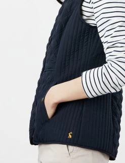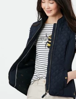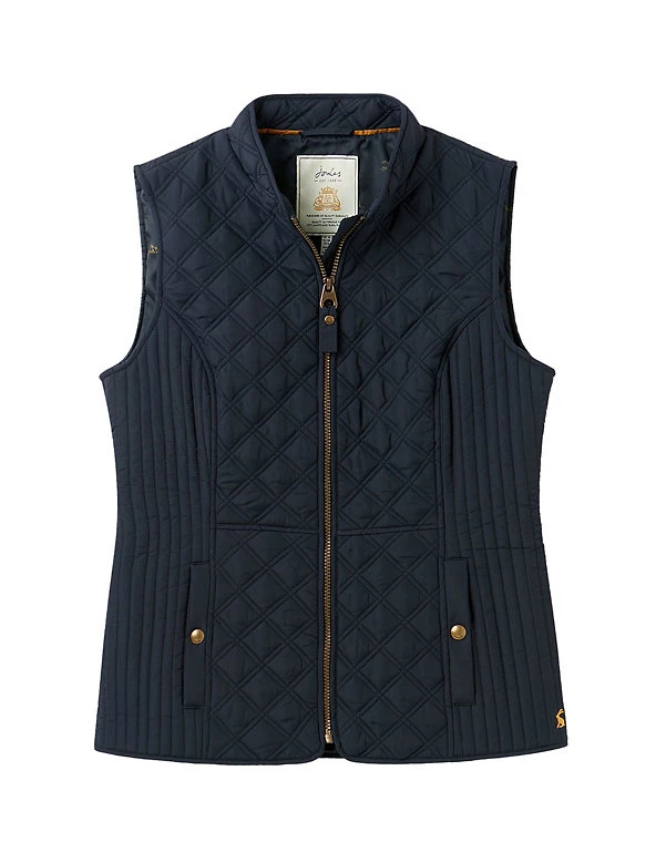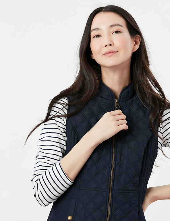 Add an extra layer of warmth on those in-between days with this zip-up gilet from Joules. The lightweight design is cut in a snug fitted shape with a back strap and contrast vertical quilting at the sides for an ultra-flattering look. Gold-tone detailing and a subtle embroidered hare elevate the style, while popper-closure pockets at the sides add a practical finish.