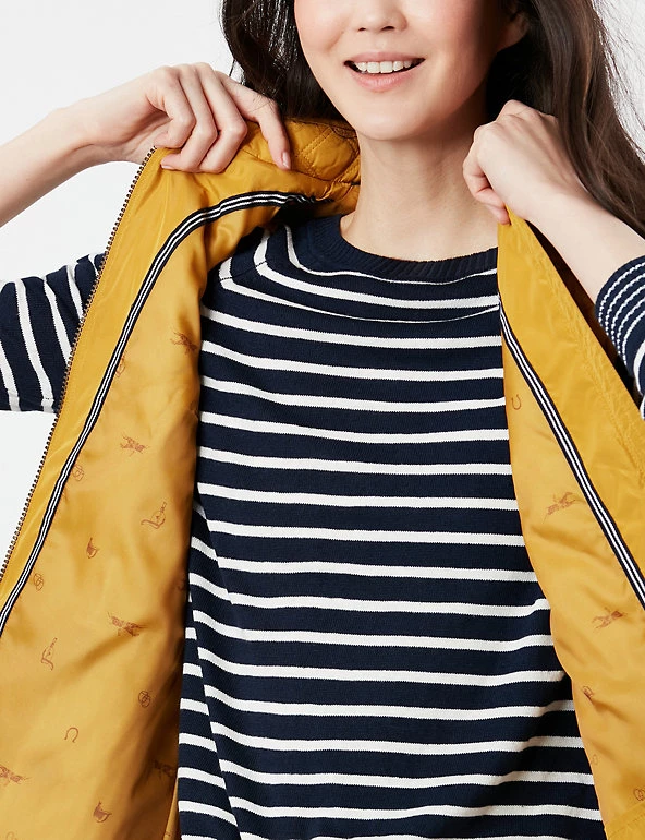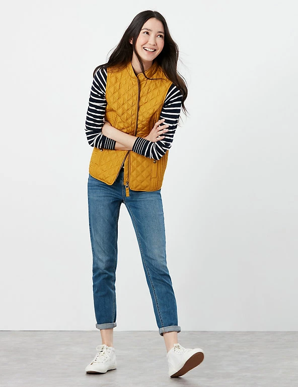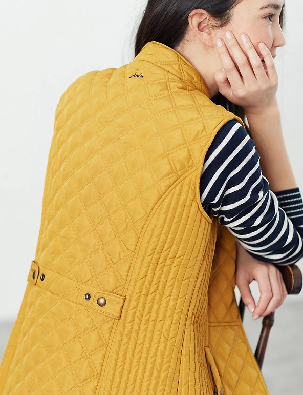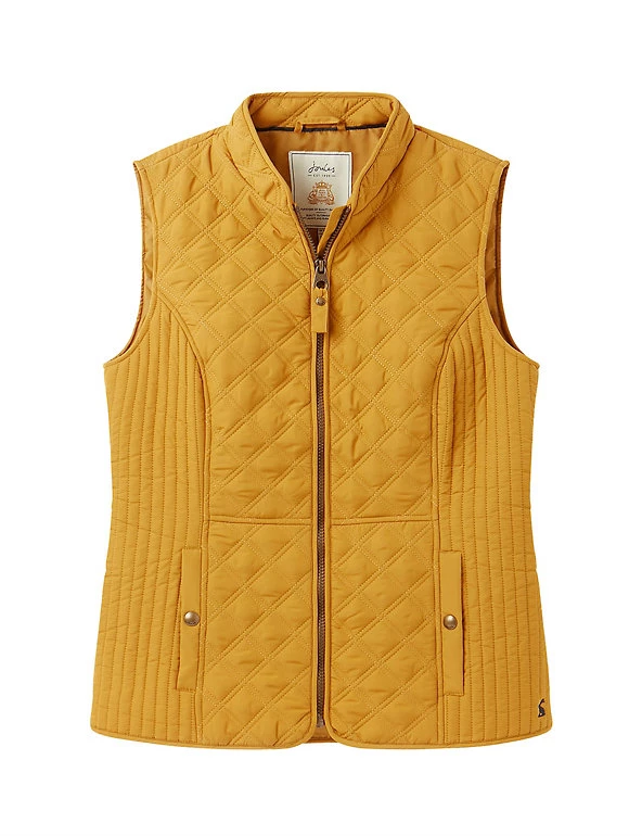 Add a warm outer layer on cooler days with this stylish and practical gilet from Joules. Cut to a feminine fitted style for a flattering shape, it features an elasticated back channel for a comfortable fit. The gilet is lined for extra warmth. A classic zip fastening and popper pockets add a handy finish. Made with recycled polyester.