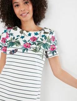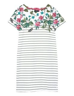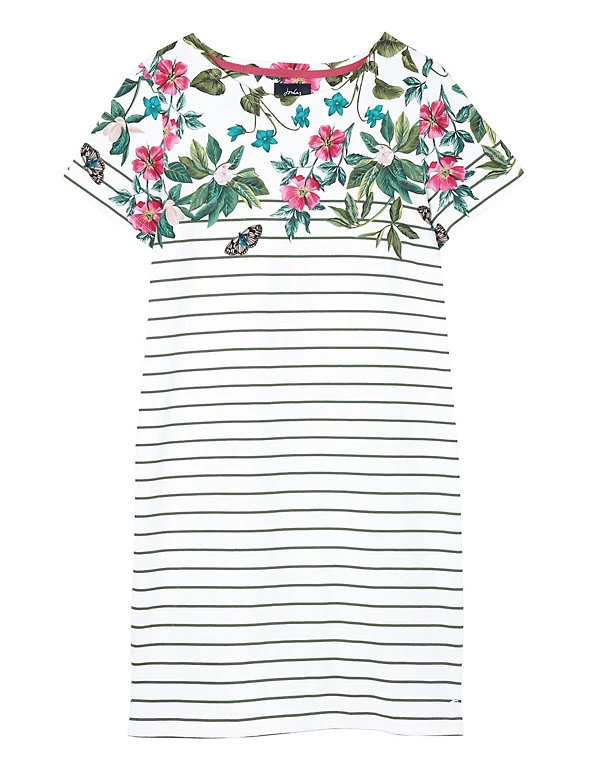 With a laid-back silhouette and pure cotton jersey fabric, this Joules t-shirt dress is made for sunny days. It’s cut in a comfortable regular fit, with an easy round neckline and short sleeves. The hem finishes at a casual knee length. Its all-over striped print is embellished with a fresh floral design at the top of the bodice.