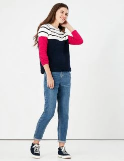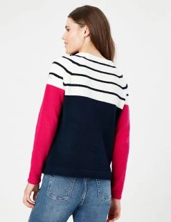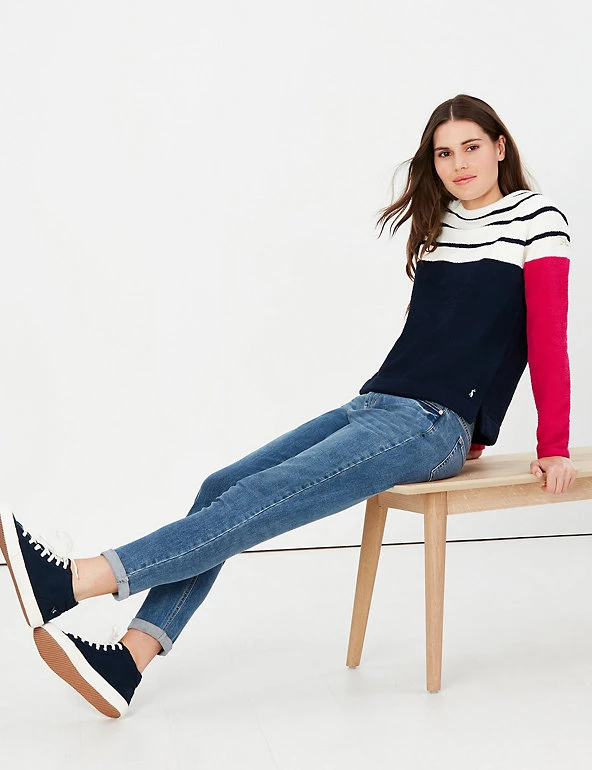 Add a statement vibe to casual outfits with this colour-blocked striped jumper from Joules. It’s cut in a comfy regular fit with raglan long sleeves and a neat crew neck. The collar, cuffs and hem feature a durable roll cuff edge. Branding on the arm and hem, and the classic hare bring signature finish.