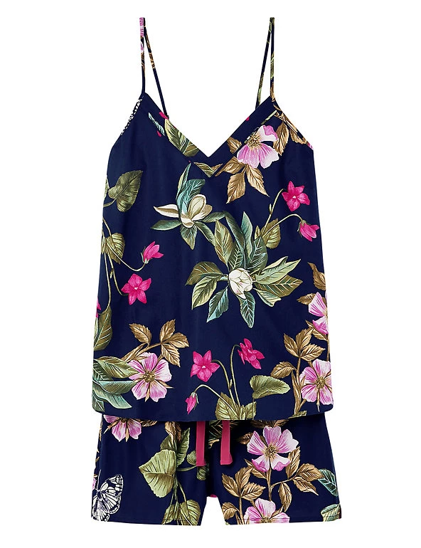 Refresh your nightwear with these cotton-modal pyjamas by Joules. This regular fit set includes a cami top with adjustable straps, plus drawstring shorts for comfort. They’re ideal for the warmer months and feature a feminine floral print throughout.
