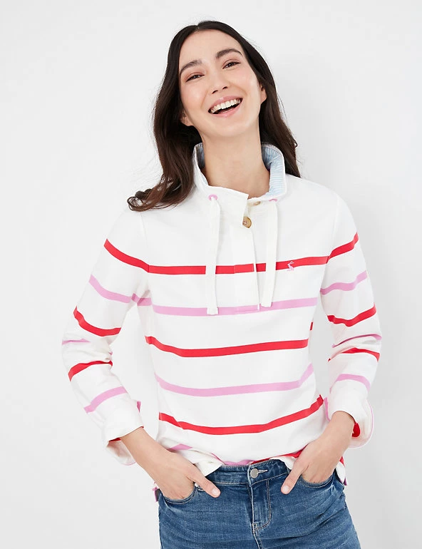 Bring a fresh seaside feel to your casualwear with this cotton-rich striped sweatshirt from Joules. It’s cut in a comfy regular fit, with a cosy funnel neckline. Chunky button fastenings at the neck are tucked behind a concealed placket for a neat finish and a drawstring neck tie gives extra protection from draughts.
