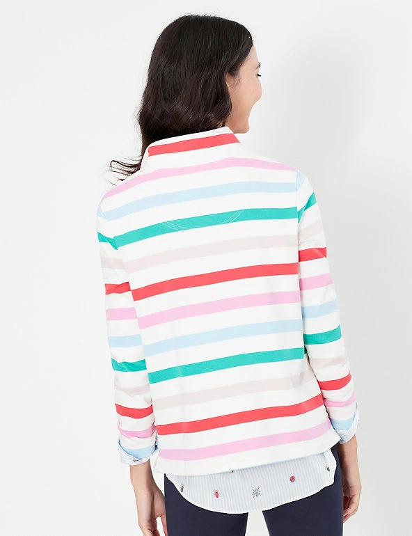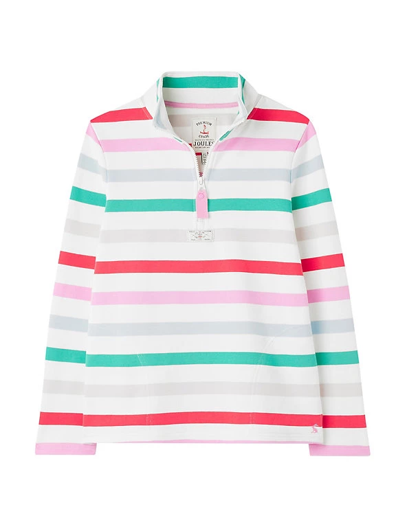 Stay snug on cooler days in this cotton-rich sweatshirt from Joules. It’s cut in a comfy regular fit, with a cosy funnel neckline. A half-zip fastening lets you adjust your warmth levels and the turn-back cuffs are lined in contrast fabric for extra interest. A colour-pop pull on the zip and a stitched label below the placket add quirky finishing details.