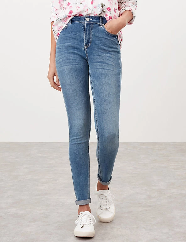 Crafted from stretchy cotton-rich denim, these Joules jeans will bring comfort and style to off-duty days. The figure-hugging skinny cut and high-rise waist give them a flattering fit. They’re finished with five-pocket styling plus a zip and button closure for a traditional touch. We only ever use responsibly sourced cotton for our clothes.