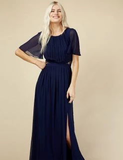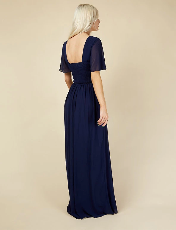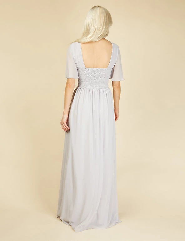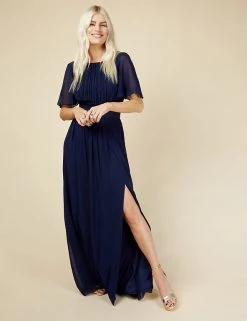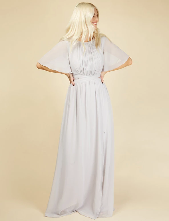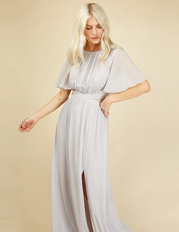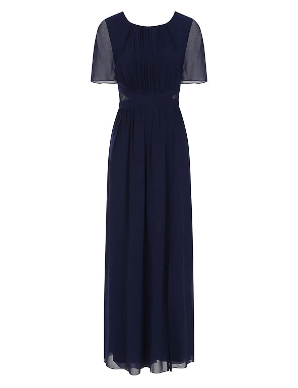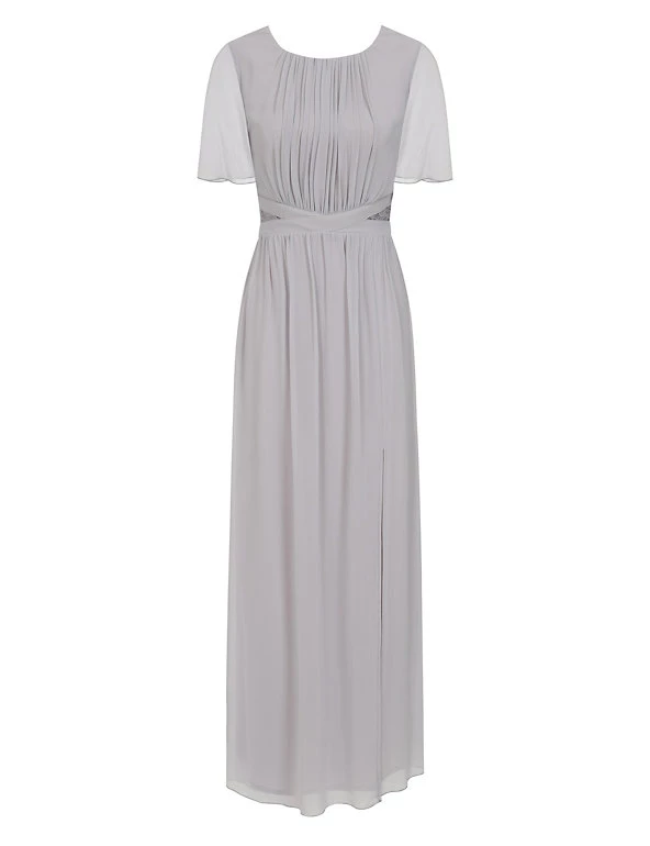 This show-stopping maxi dress from Little Mistress is perfect for proms, weddings and events. This regular-fit style is designed with a criss-cross waist for flattering shaping. Ruching around the chest and gentle gathers in the skirt create a graceful effect. Short angel sleeves and lace inserts at the waist provide the finishing touches. It’s fully lined for all-day (and night) comfort.