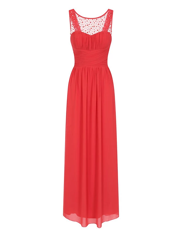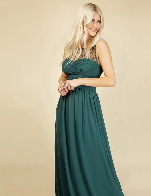 Choose a show-stopping style for special occasions with this maxi dress from Little Mistress. This sleeveless dress is cut to a regular fit, with a romantic sweetheart neckline and intricate hand-embellished beading. The pleated wrap-style bodice and waisted silhouette are designed to flatter, while a shirred back provides flexibility. This piece is lined for a smooth finish.
